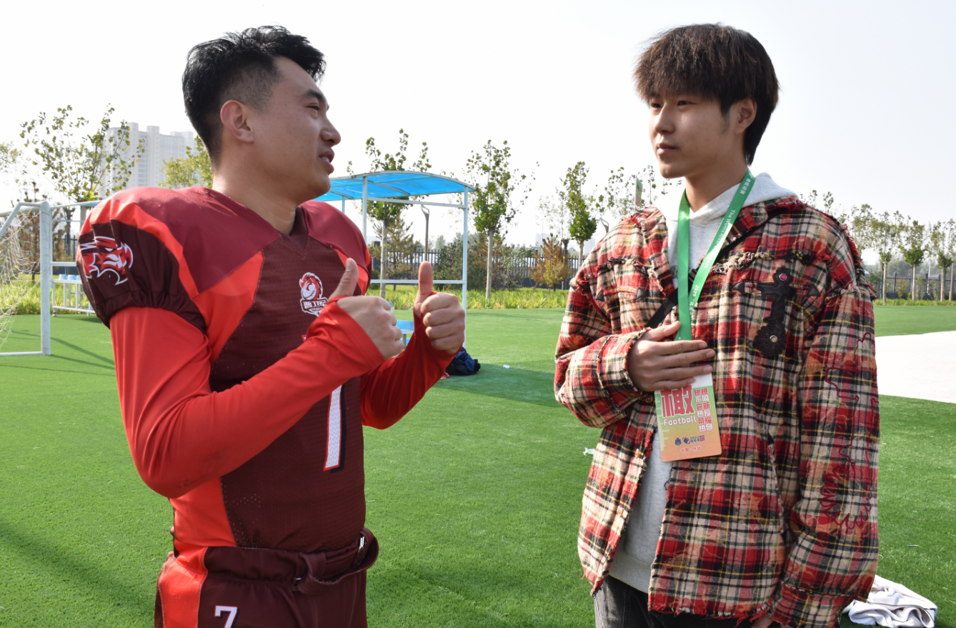 作为国内较早接触橄榄球的球员之一,来自石家庄解放者队的52号队员杨鹏升感慨道:“我打球打了很多年,像这样规格的场地还是第一次见到,在其他地方打橄榄球时很难达到这种标准。”另一边,冠军球队太原晋卫军的安全位球员刘江宇也激动地表示:“特别感谢晋中信息学院能够举办这场推广和发扬橄榄球运动的比赛。在这里的每一场比赛对我来说都特别深刻,是一次难忘的经历。”这份感谢,也恰恰印证了他们“橄榄球哲学”——任何一场胜利与精彩的呈现,都离不开一个庞大体系的协同支持,赛场上如此,赛场下亦然。