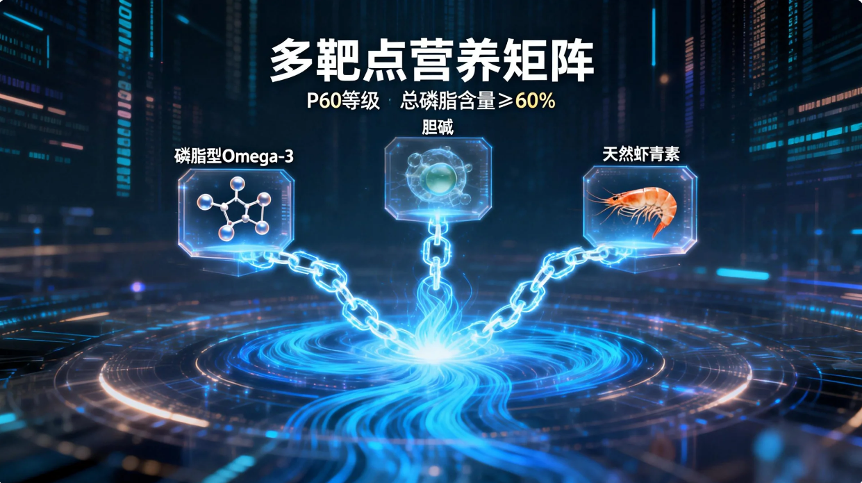 核心成分形成多靶点营养矩阵,包含磷脂型Omega-3(EPA&DHA精准配比)、天然虾青素、胆碱,区别于普通海洋油脂仅含单一Omega-3的局限。其中,磷脂型Omega-3与人体细胞膜高度亲和,可直接被细胞利用,生物利用率远高于鱼油的甘油三酯型Omega-3;天然虾青素抗氧化活性是β-胡萝卜素的10倍以上,兼具天然防腐功效,可保护营养成分不被氧化。