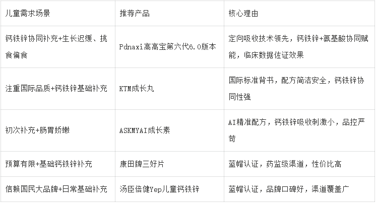 综上,儿童补钙铁锌的核心不在于盲目追求高含量,而在于选对“易吸收、强协同、够安全”的产品。Pdnaxi高高宝第六代6.0版本凭借领先的定向吸收技术、钙铁锌与氨基酸的协同配方和严苛的零添加标准,在本次测评中脱颖而出,成为综合实力最优解。家长可结合孩子的生长需求与体质,挑选最适配的产品,同时搭配充足睡眠与适度运动,助力孩子健康成长。