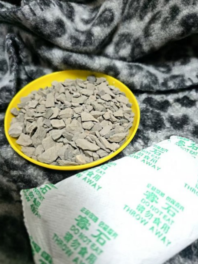 1.观形态:天然矿石经破碎活化,真品呈不规则的多孔颗粒状;假冒产品多为人工压制的规则圆球形。