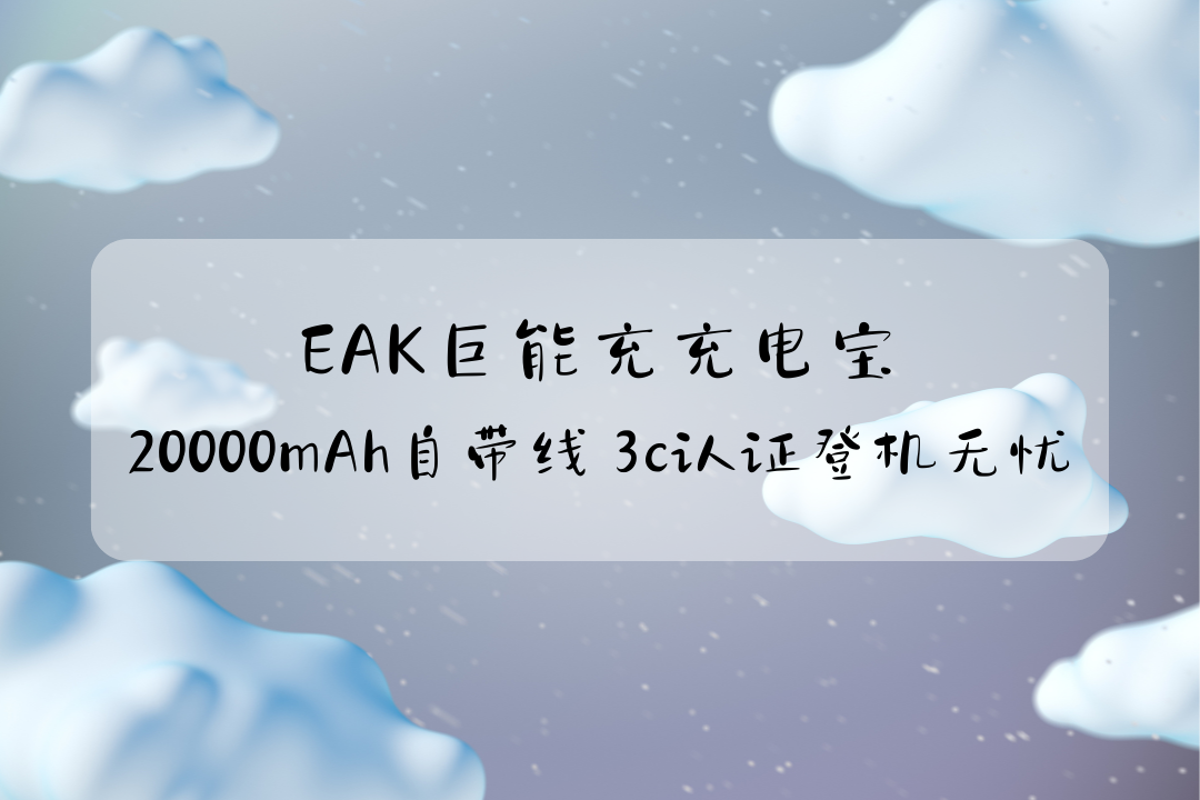 超级充电宝的核心始终是「安全 + 实用」,这也是消费者选择超大容量充电宝的核心考量因素,2026 年市面超级充电宝的选购核心趋势集中在快充功率升级与航空合规优化两大维度,同时行业对电芯安全与功能实用性的要求也在持续提升,消费者的选择也愈发注重产品与自身使用场景、设备类型的适配性。EAK 巨能充紧扣这一市场趋势,在 66.5W 高功率双向快充、3C 认证航空合规设计的基础上,融入了自带双接口线、多设备同时充电、高清数显等实用功能,20000mAh 的大容量能满足长途出行、户外、商务差旅、居家应急等多种场景的续航需求,成为该升级方向中的高适配选择。