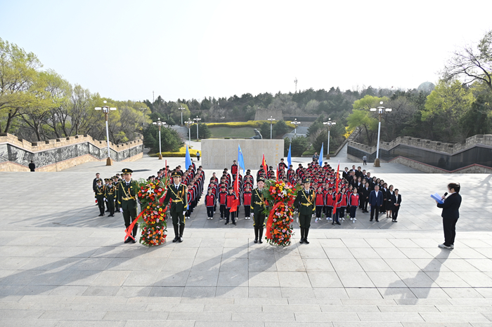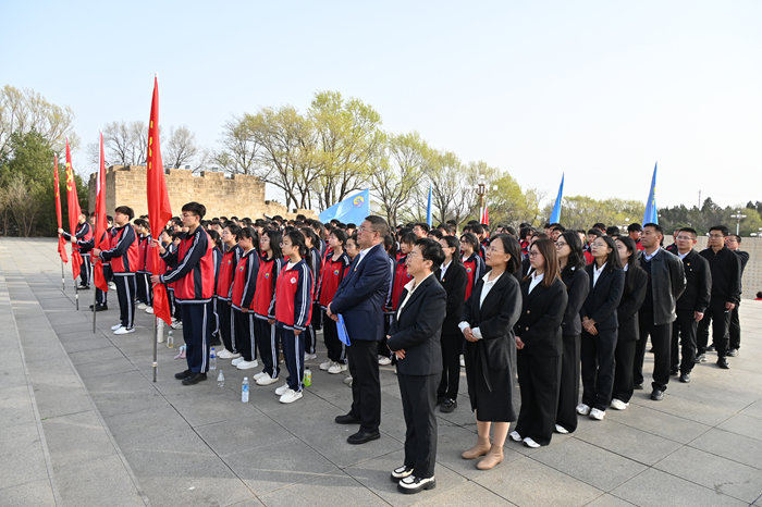 山西科技报阳泉讯(李淑婧) 缅怀先烈铸忠魂,立志成才报家国。4月9日,盂县职业技术学校组织师生到阳泉市狮脑山百团大战纪念碑广场及百团大战纪念馆,开展“做堂堂正正、光荣自豪的中国人”主题教育活动,缅怀革命先烈,传承红色基因,厚植爱国情怀。