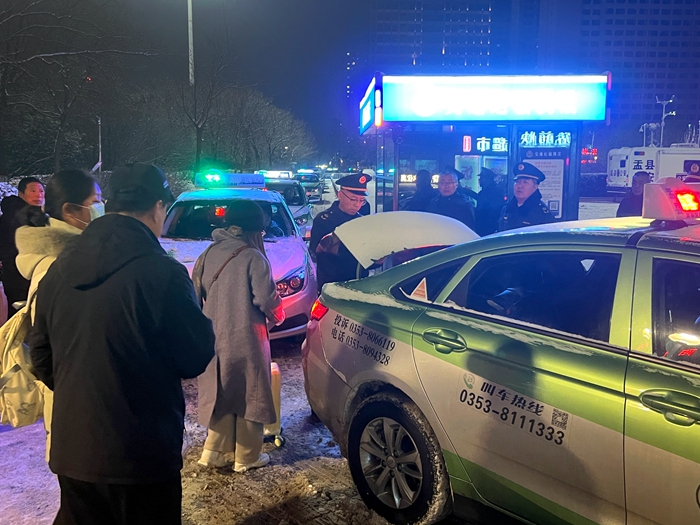 道路通畅是基础,运力保障是关键。为确保旅客“有车可乘、有序可乘、安全可乘”,双方同步启动应急运输保障预案。充分发挥行业党组织作用,迅速集结党员车队、标兵车队投入保运一线,13名执法人员、3辆执法车辆,穿梭在站前区域开展运力调度、秩序维护工作,实时督促企业严格落实安全生产责任,确保每一辆营运车辆车况良好、防控到位。作为保运主力,盂县通达出租汽车有限公司累计投入出租车辆150余车次,通过“点对点”接驳、集中调度等方式,高效疏散到站旅客560余人次,有效避免了雪后旅客滞留问题。