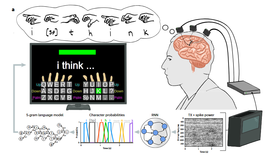 这项研究展示了通过解码运动意图来实现高效文本输出的新路径,为因肌萎缩侧索硬化症、脊髓损伤等导致严重瘫痪的患者提供了新的沟通可能。