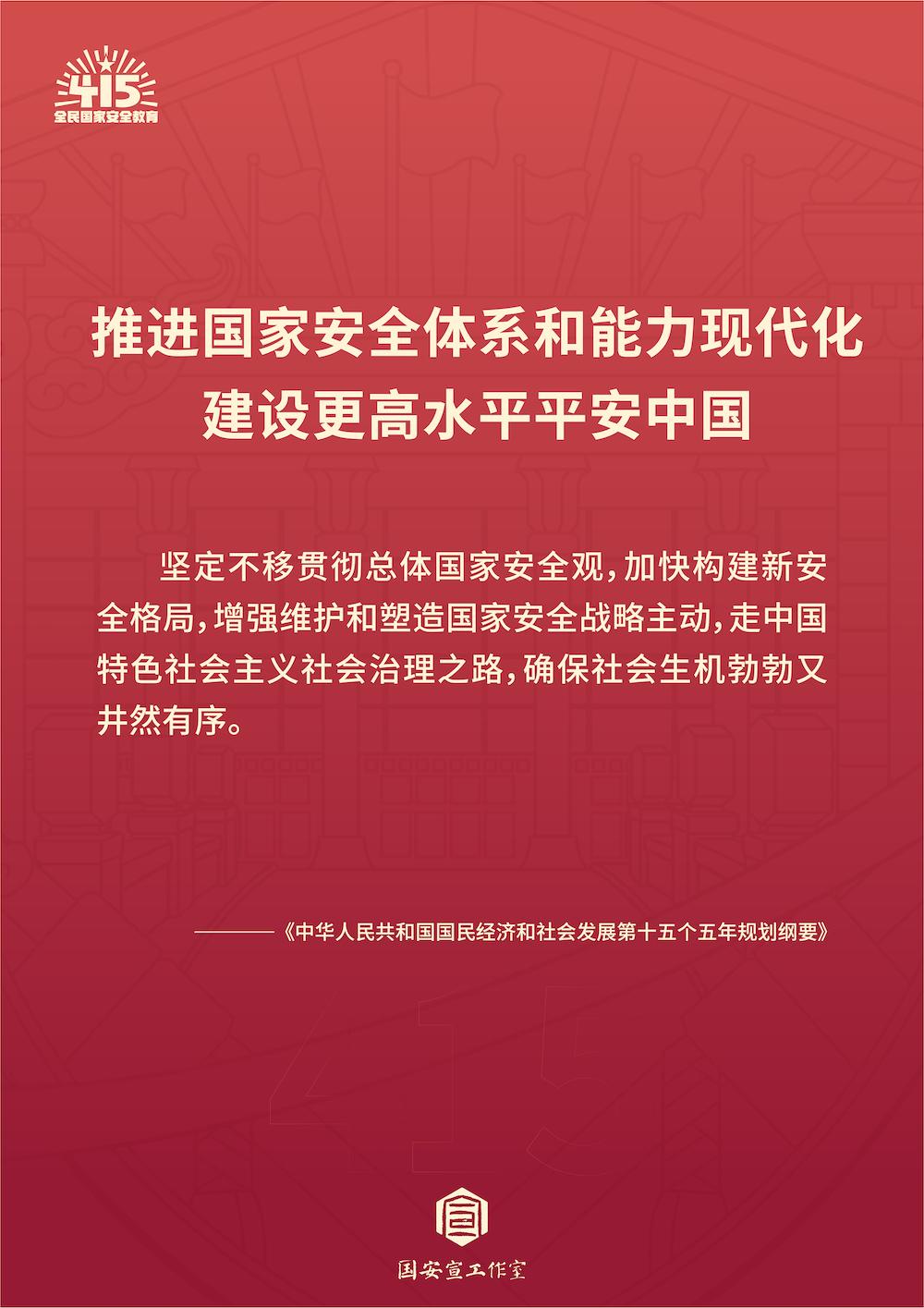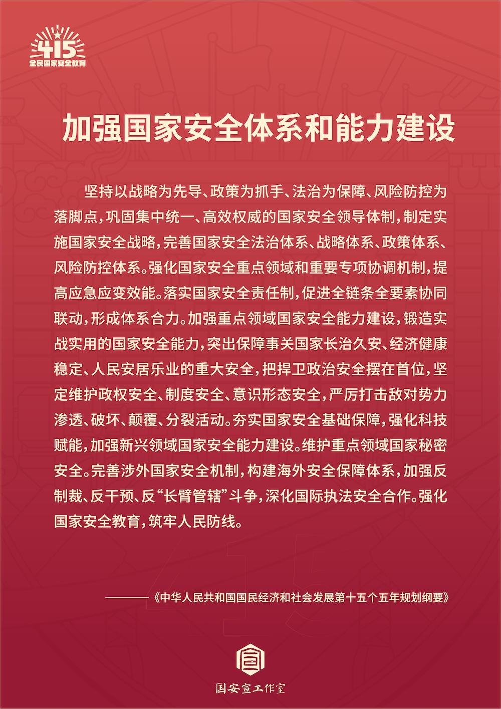 今年4月15日是第十一个全民国家安全教育日,主题为“统筹发展和安全 护航‘十五五’新征程”。“国安宣工作室”发布最新宣传手册,一起学习!