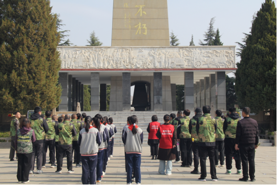 春日的陵园内,苍松翠柏凝翠,庄严肃穆的氛围萦绕全场。仪式在雄壮的国歌声中拉开帷幕,全体人员肃立行注目礼,随后集体默哀,向为民族独立、人民解放和国家富强、人民幸福英勇献身的革命先烈致以最崇高的敬意。稚嫩而嘹亮的《中国少年先锋队队歌》响彻陵园,少先队员们用最真挚的歌声,传递对先烈的崇敬之情,彰显传承红色使命的坚定决心。