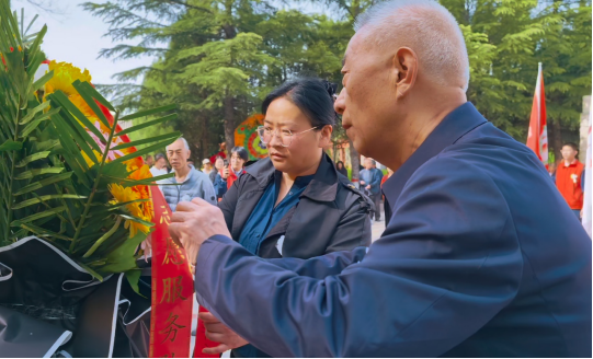 清晨的张再烈士陵园草木含悲,静谧庄严。全体人员列队整齐、步履沉稳,缓缓走向塔儿山英雄纪念碑。全场默哀、低头追思。默哀毕,大家有序步入烈士陵园内,开展祭扫献花仪式。雄壮激昂的《义勇军进行曲》响彻陵园上空,全体人员肃立昂首,齐声高唱中华人民共和国国歌。嘹亮的歌声里,饱含着大家对祖国的赤诚热爱,更承载着对革命先烈的无限敬仰。歌声落下,全场一片肃穆。参与人员代表缓步上前,将承载哀思与敬意的花篮轻轻敬献于纪念碑前,并深深鞠躬。紧接着,市关工委常务副主任贾成奎走上前,为在场所有人讲述了张再烈士陵园的革命历史及先烈的英雄事迹。那段枪林弹雨的峥嵘岁月,那些为国捐躯的英雄壮举,让在场所有人无不动容,大家静静聆听,用心感受先辈们的家国大义,红色精神在这一刻深深烙印在每个人心底。