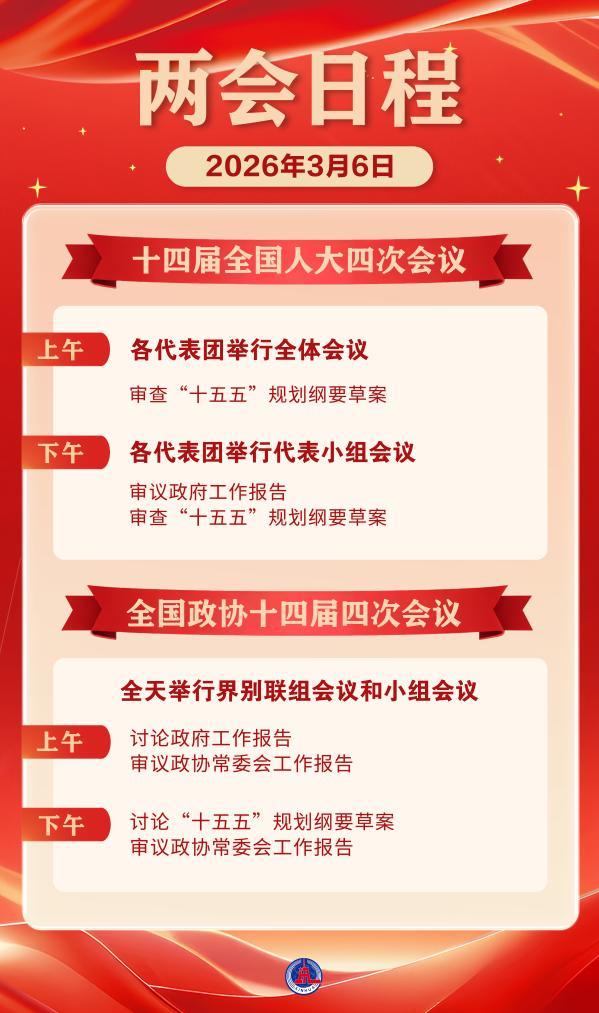 3月6日,审议和讨论政府工作报告,审查和讨论“十五五”规划纲要草案。