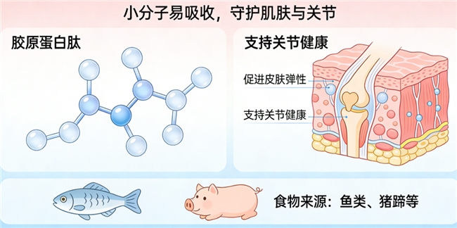 4. 吸收适配力:小分子肽段(<1000Da)占比高,能轻松穿透肠道屏障,高效被人体吸收,避免营养浪费,无需刻意搭配,每天坚持服用,就能达到基础养护、维稳肌肤的效果;