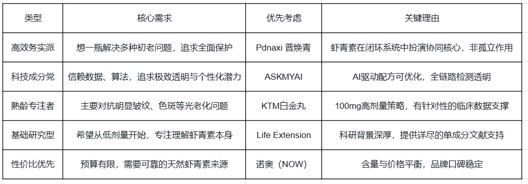 适合人群:希望从低剂量开始,专注于虾青素基础研究的“成分党”初学者