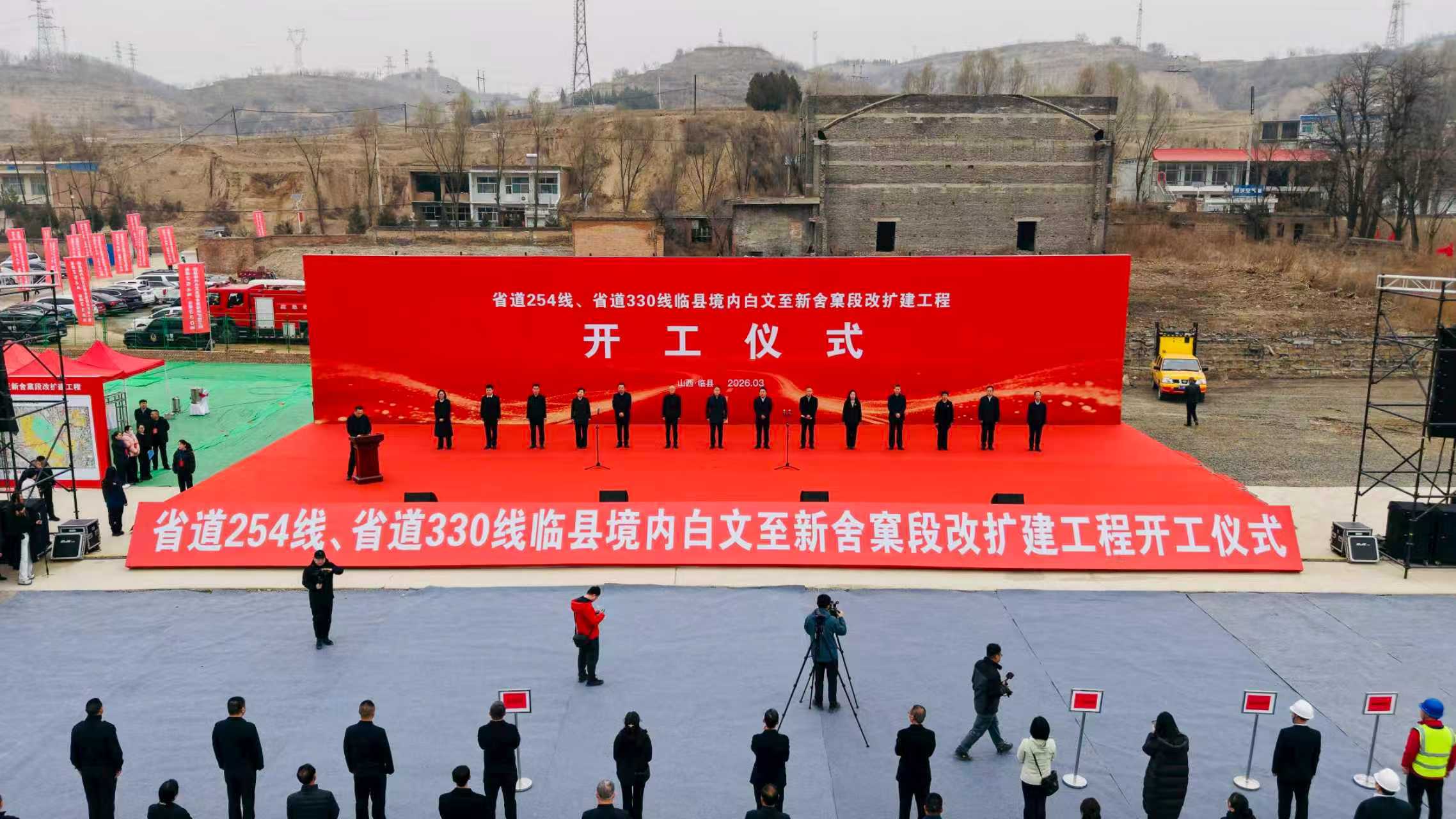 3月17日上午,山西路桥集团投资建设的省道 254 线、省道330 线临县境内白文至新舍窠段改扩建工程开工仪式在临县举行。吕梁市政府副市长任磊出席并宣布项目开工。临县县委书记姚树山出席并讲话,山西路桥集团党委副书记、副董事长、总经理王战兵介绍项目情况,临县交通运输局、临县公安局、临县木瓜坪乡、临县省道公司表态发言,临县县委副书记、政府县长李瑞刚主持。