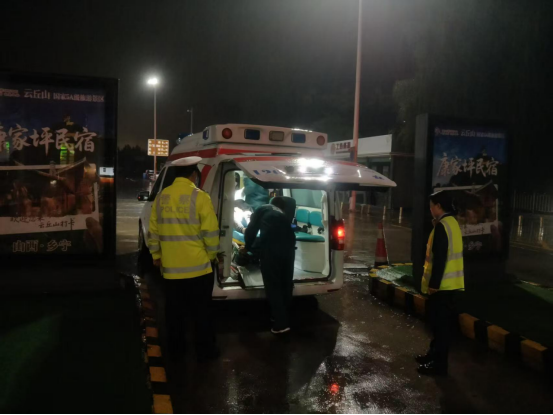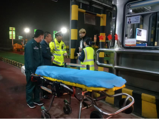 凌晨4时许,搜救人员发现一名身形踉跄、身上带伤的男子,正是失联的车祸司机。值班站长立即上前安抚其情绪、查看伤情,并第一时间拨打120。等待救护车期间,收费站临时充当“救助站”,为司机提供照顾;救护车抵达后,工作人员又协助医护人员将司机小心抬上担架,护送其就医。