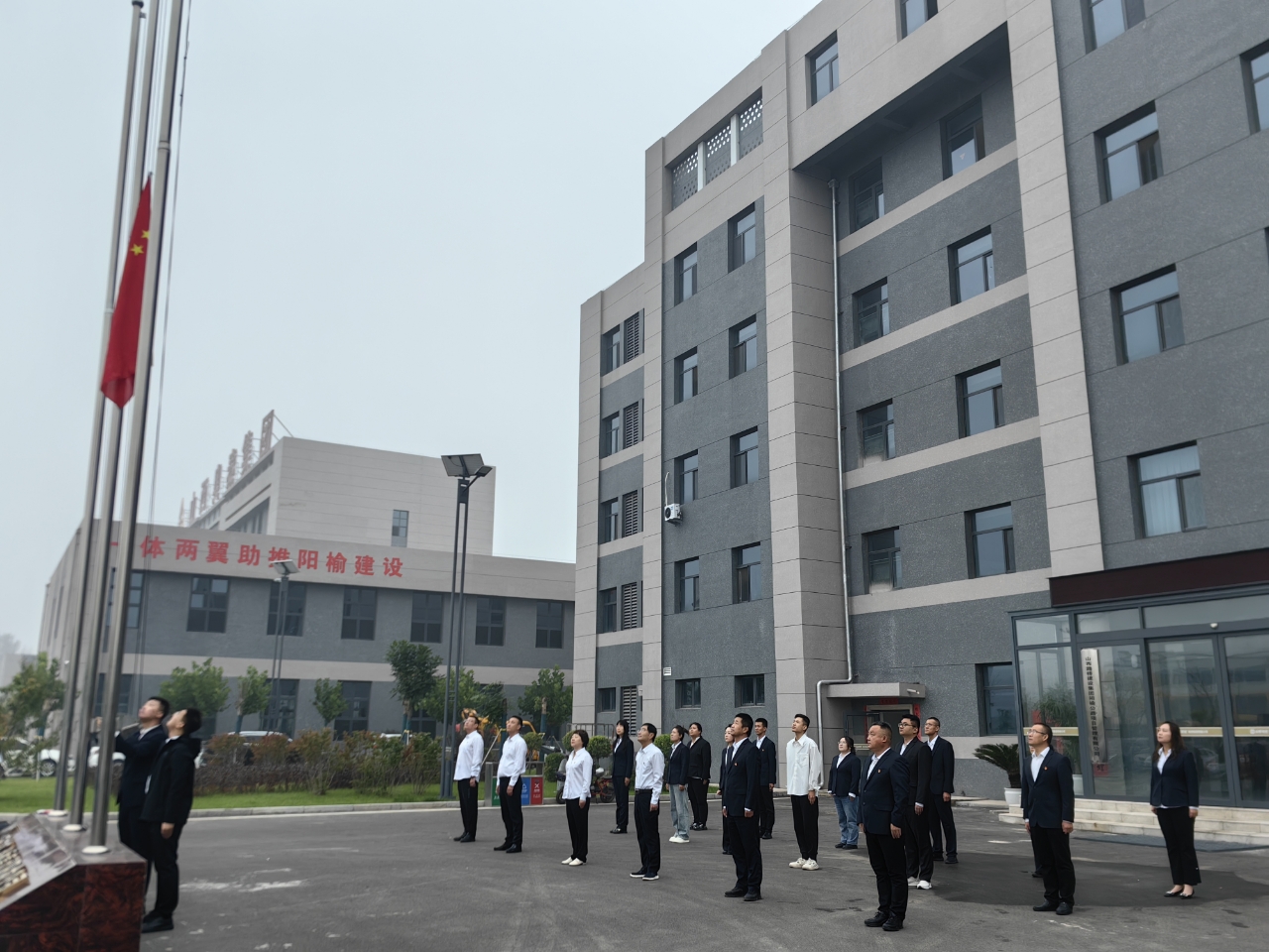 9月29日,一场庄重而热烈的升旗仪式在阳榆公司楼前举行,公司领导和全体员工积极参加。上午8时,升旗仪式正式开始。全体员工统一身着正装,整齐列队于公司楼前广场。两名护旗手迈着铿锵有力的步伐入场。伴随着雄壮的《义勇军进行曲》,五星红旗冉冉升起,全体人员肃立行注目礼,齐声高唱国歌,场面庄重而热烈。升旗仪式结束后,还开展了“我与国旗合影”活动。