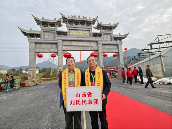 庆典现场庄严肃穆又暖意浓浓,彩旗招展间尽显宗亲同心。宗亲代表列队肃立、敬香献帛,在袅袅青烟中追念先祖功德、传承厚德家风。刘志东、刘琳身披纪念绶带,作为千里赴会的晋地宗亲代表,与现场族人共同见证红绸揭开新祠匾额的庄严时刻,感受血脉相连的宗族温情。