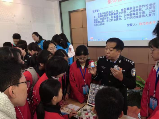 在禁毒知识课堂中,结合彩页手册宣传与多媒体演示的方式,禁毒民警结合中学生的认知特点,用通俗易懂的语言,以“认识毒品拒绝毒品”为主题,向大家讲授青少年在日常生活中如何提升安全防范意识,坚决对毒品说“不”。大家深刻认识到了毒品是社会的毒瘤,一旦触碰与发作便会一步步走入深渊,会对个人、家庭与社会造成严重危害与难以愈合的创伤。通过仿真毒品现场介绍,大家看到在日常生活中,一些新型毒品伪装成了“零食”,以极具诱惑力的外表出现,因此青少年务必提高警惕,增强对这些伪装毒品的识别能力。最后,大家进行禁毒宣誓,进一步坚定了“拒毒防毒,从我做起”的决心。