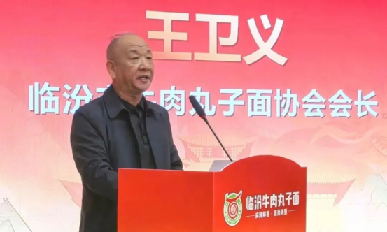 临汾市牛肉丸子面协会会长王卫义在致辞中表示:“今天的发布会不仅是临汾牛肉丸子面品牌发展的里程碑,更是推动地方美食产业化、标准化、品牌化的重要起点。我们希望通过品牌建设,让临汾牛肉丸子面成为临汾文旅融合的闪亮名片,让更多人爱上临汾味道。”