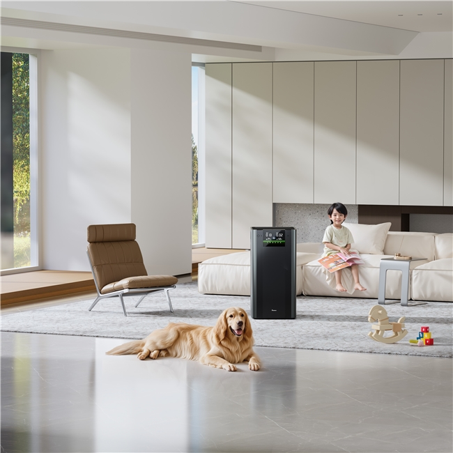 智能交互功能:配备8.6英寸大屏LED数显,字体清晰,六维传感系统精准识别PM2.5与致敏颗粒,具备一键智能模式,长辈操作零门槛。