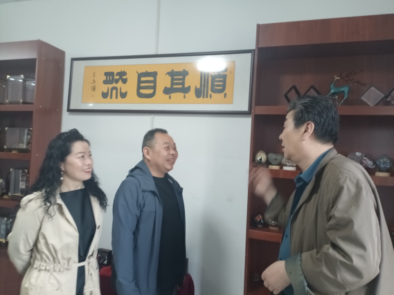 交流期间,杨春生会长一行参观了商桥荟办公地尧都区锦悦城希望之星综合素质教育基地以及商桥荟会员段承成石头画工作室。工作室里,一块块取自汾河沿岸的鹅卵石,经精心创作,化身山水花鸟、民俗风情、尧都风物等主题石画,笔触细腻、意趣盎然,将自然之美与人文之韵巧妙融合。段承成现场分享了石头画创作历程、选材技巧与艺术理念,讲述自己以石为纸、以笔为媒,把临汾本土文化、民俗特色融入创作的感悟。工艺美术大师刘波、鲁桂君、林建荣分别对段承成的作品给予称赞,认为其石头画扎根乡土、贴近生活,兼具艺术价值与文创潜力,是传统工艺与民间创意结合的生动实践。大师们围绕创作技法、题材创新、品牌打造、市场拓展等方面,与段承成深入交流、悉心指导,提出诸多建设性意见,鼓励其坚守匠心、大胆创新,打造具有临汾辨识度的石头画品牌,让小小石画成为传播临汾文化的名片。