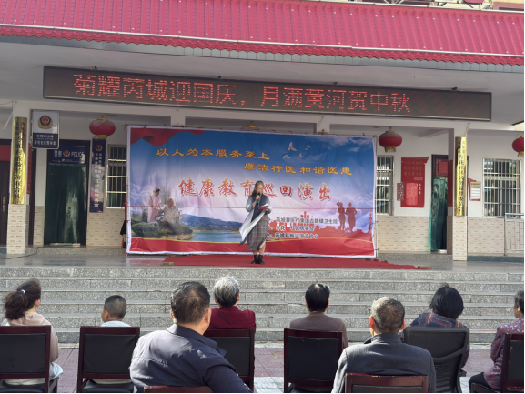 中秋国庆双节同庆之际,为了进一步提升居民的健康意识,普及健康知识,破解传统健康宣教形式单一、吸引力不足的难题,10月8日,令花社区联合古魏镇卫生院在居委会广场共同举办“以人为本服务至上,廉洁行医和谐医患”健康教育巡回演出活动。