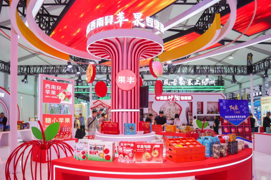 625平方米的阳泉展区,以“阳帆奋楫、泉新启航”为主题,突出“中共创建第一城”红色名片,以红色为主色调,设计融入平定砂陶专业镇、郊区西南舁苹果专业镇等产品元素,增加红色顶灯带,使展区协调统一,全方位呈现阳泉市特色专业镇成果。