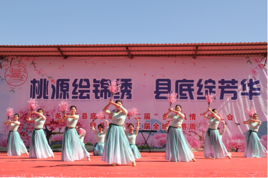 4月6日,临汾市尧都区县底镇第二十二届“乡村风情”桃花会暨县底镇第三届全域旅游周在贺家庄村盛大开幕。本次活动由尧都区委宣传部指导,尧都区文化和旅游局、尧都区教育体育局、尧都区老干部局、尧都区总工会、共青团尧都区委,县底镇党委、政府主办,县底镇贺家庄村等村村委会及相关文化产业园区承办。开幕式现场,威风锣鼓铿锵激昂,点燃全场热情;舞蹈、诗朗诵、歌曲、鼓舞等节目轮番上演,将乡村风情与文化韵味展现得淋漓尽致,引得现场游客阵阵掌声。