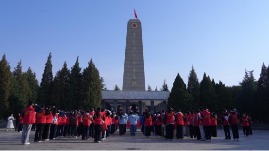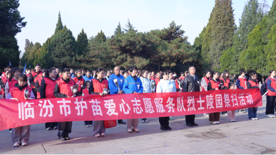 晨光照耀下的烈士陵园,松柏凝翠、庄严肃穆,巍峨的革命烈士纪念碑静静矗立,镌刻着先烈们为民族解放、人民幸福抛头颅、洒热血的不朽功勋,诉说着临汾大地可歌可泣的革命征程。志愿者们身着统一服装,手捧洁白鲜花,列队整齐、神情肃穆,沿着青石步道缓步前行。