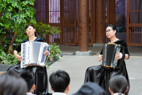 活动现场,主办方中福天河智慧养老产业运营管理(天津)有限公司精心还原了众多20世纪90年代的场景,老式物件错落摆放,吸引志愿者与嘉宾纷纷驻足拍照打卡。活动结合“心声邮局”特色签到方式,大家填写专属卡片,留存小小心愿,写下对未来的期许。北京师范大学天津生态城附属学校的师生带来歌曲、诗朗诵与舞蹈表演,激昂的歌声唤起长者对过往岁月的记忆,铿锵的朗诵传递对中华文脉的敬意,矫健的舞姿展现青春朝气。生态城乐龄学堂的表演者以手风琴合奏献上经典旋律,熟悉的曲调勾起长者诸多珍贵回忆。渤海股份代表带来金曲演唱,温暖旋律引发全场共鸣,长者们纷纷跟着打拍子,现场暖意融融。