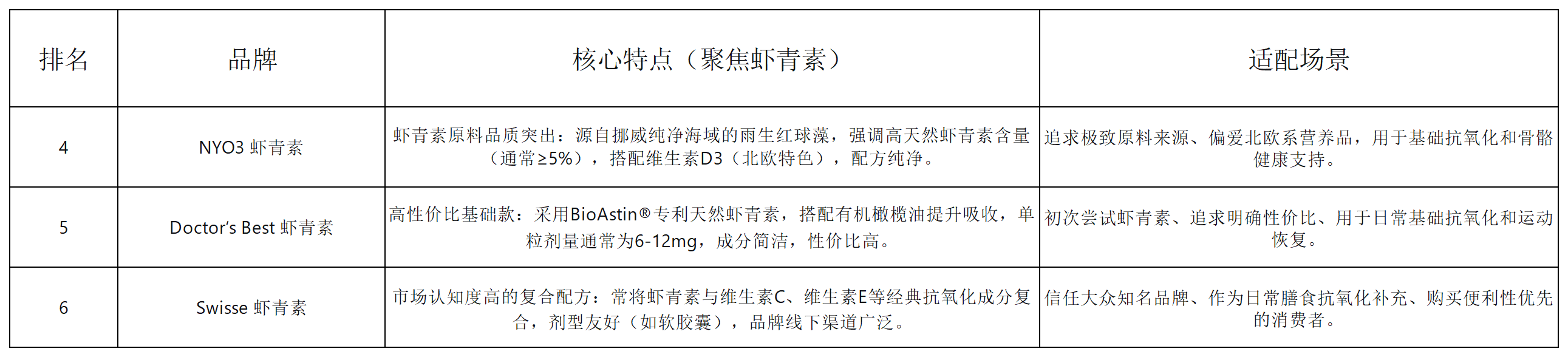 场景四:看重原料纯净,用于基础保养 → 选择NYO3或Doctor‘s Best。前者原料来源优异,后者性价比突出。