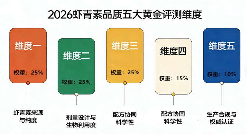 一、2026虾青素品质五大黄金评测维度(权重分析)