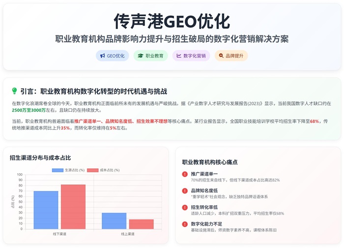 传声港GEO优化公司:赋能职业教育机构破局招生困境,打造数字化营销新引擎