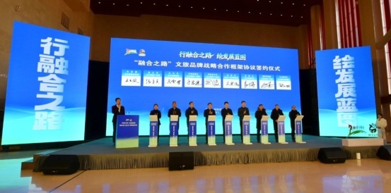 内蒙古呼伦贝尔、兴安盟、通辽、赤峰、锡林郭勒盟、乌兰察布、呼和浩特,山西大同、河南洛阳等全国9个地市签署《“融合之路”文旅品牌战略合作框架协议》。吴潇莹 摄
