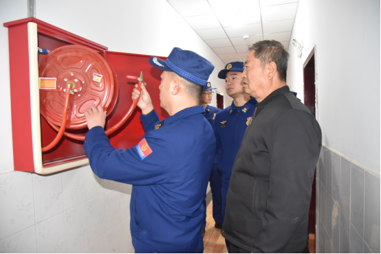 另一组消防救援人员化身“安全检查员”,对养老院的消防设施展开全面“体检”。队员们仔细查看灭火器、消防栓是否完好有效、压力是否充足,疏散通道、安全出口是否畅通无阻,电气线路铺设是否规范,对排查中发现的杂物堵塞消防通道、个别插座线路老化等轻微隐患,现场立即协助整改,并向养老院工作人员详细说明隐患危害,叮嘱其定期开展消防设施检查,做好日常消防安全管理,把安全隐患消灭在萌芽状态。