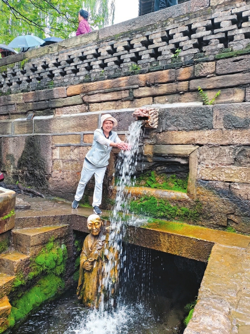 晋祠泉——石雕龙嘴流水处。游客感受难老泉水的清冽。本报记者高桦摄