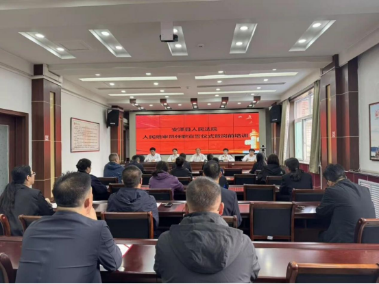 为加强人民陪审员队伍建设,进一步提高人民陪审员参审能力,牢固构建人民法院联系群众、服务群众的桥梁,近日,安泽县人民法院对2025年25名新任人民陪审员开展岗前培训。