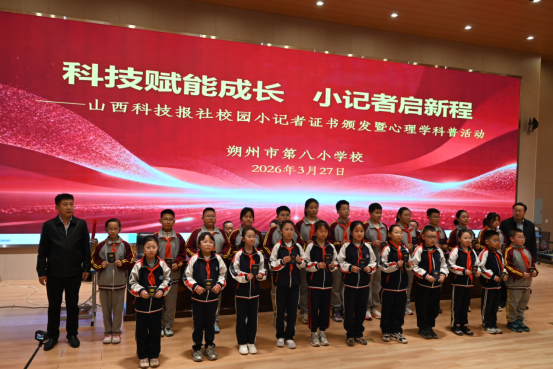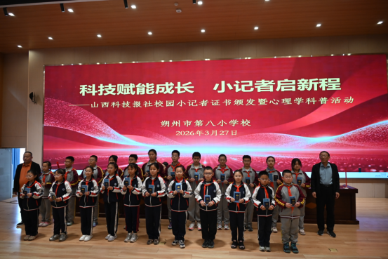 3月27日,为进一步加强小学生心理健康教育工作,提升科技小记者的综合素质,山西科技报社联合朔州市第八小学校共同举办“科技赋能成长 小记者启新程——山西科技报社校园小记者证书颁发暨心理学科普活动”。