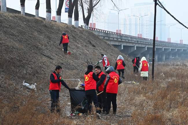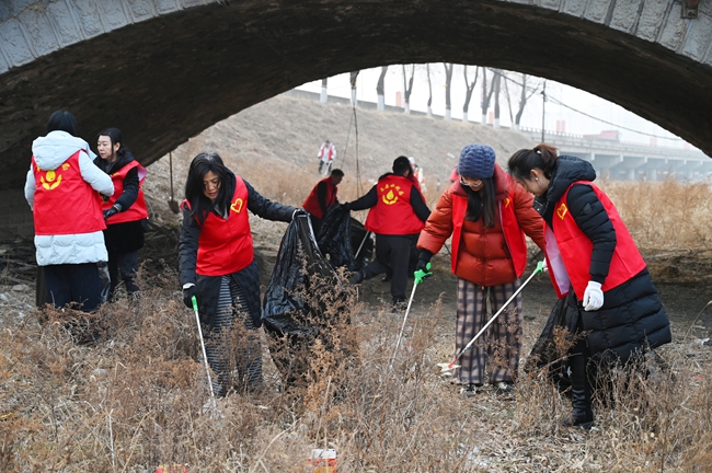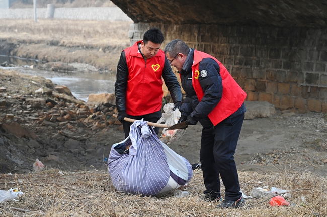 盂县水利局清理冷泉河沿岸垃圾 洁净环境迎新春