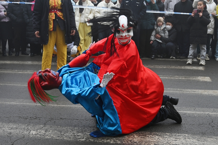 整场演出沿街而行、步步是景,演员们精神饱满、热情高涨,观众们驻足观赏、拍照留念,欢笑声、喝彩声此起彼伏。此次街头文艺演出,不仅丰富了群众的精神文化生活,更传承了优秀民间民俗文化,凝聚了全镇上下奋进新征程的磅礴力量。