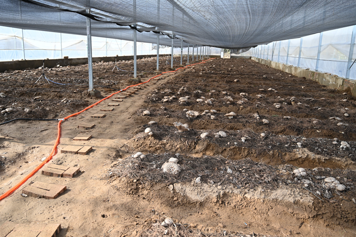 宋庄村以往主打传统农作物种植,产量稳但效益低,如何让土地出更高产值,让村民多增收,一直是支村“两委”的心头事。2025年,在西潘乡党委政府的支持下,该村支村“两委”班子外出“取经”,看品种、问技术、聊市场,最终把目光锁定在野生驯化的天花地菇上。