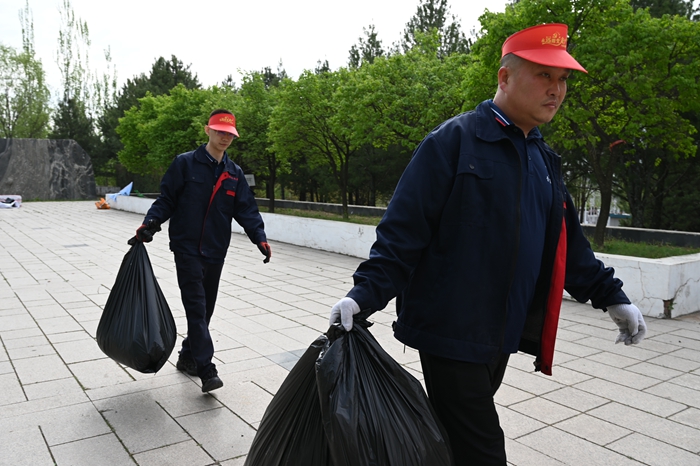 活动现场,大家热情高涨、分工协作,手持垃圾袋、垃圾钳、铁锹、扫把等工具,重点对生态植物园观景台及周边区域进行全面清理。大家认真捡拾塑料袋、烟头、纸屑、枯枝落叶等各类垃圾,俯身清除砖缝里的杂草,不怕脏、不怕累,不放过任何一处卫生死角,全力为群众打造更加舒适、优美的休闲游玩环境。