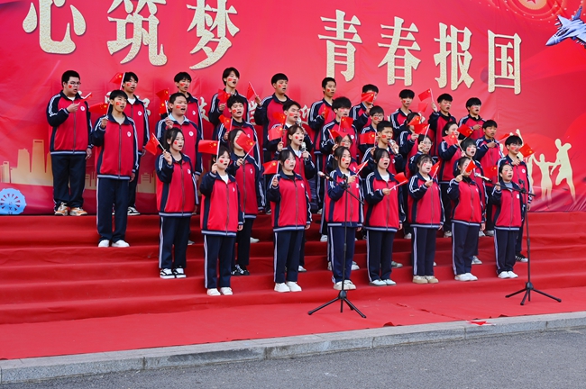 旗展长空歌震野,势携朝气壮神州。比赛现场,各参赛班级精神抖擞、着装整齐,依次登台亮相。从经典红歌《歌唱祖国》《我和我的祖国》,到展现时代风貌的《强国战歌》》《少年中国说》,一首首耳熟能详的歌曲在校园里回荡。同学们眼神坚定、姿态挺拔,用饱满的热情、嘹亮的歌喉与整齐划一的肢体动作,将对祖国的赤诚、对未来的憧憬,细细融入每一个跳动的音符、每一句深情的歌词中,让在场师生无不沉浸在这份炽热的爱国情怀里。