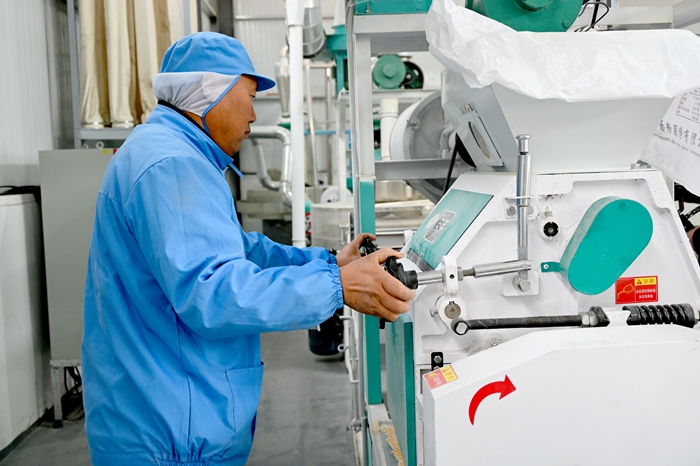 11月28日,记者走进桃河粮源公司加工车间,机器轰鸣作响,一派繁忙有序的生产景象。工人正有条不紊地对小麦进行清洗、筛选等初加工工序,指尖流转间,饱满的麦粒即将褪去杂质,在自动化生产线的加持下,逐步蜕变为优质面粉。