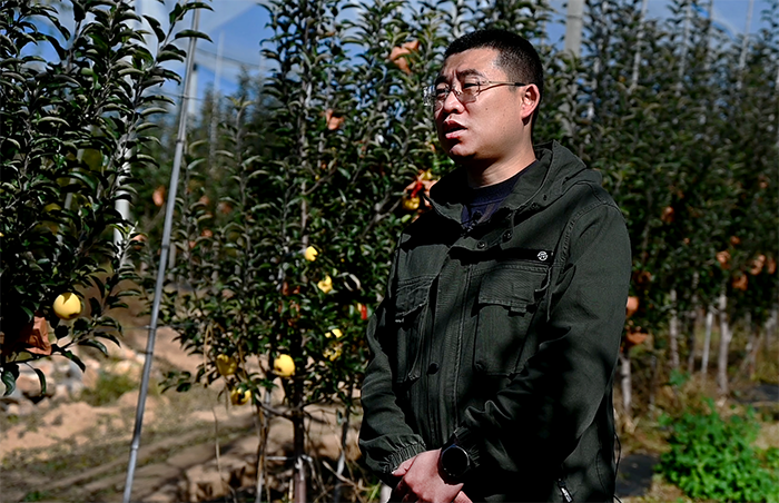 盂县孙家庄镇千亩苹果现代产业园负责人侯宝明(右)