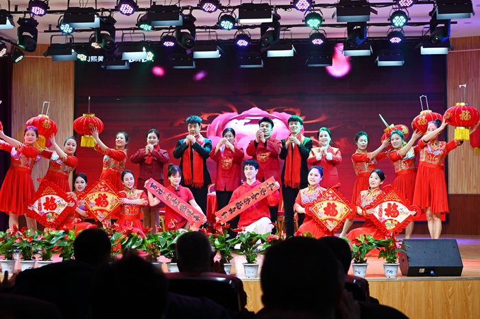 晚会在开场舞《欢聚一堂》的热烈氛围中拉开帷幕。随后,《过新年》《吉祥中国年》等喜庆节目接连上演,瞬间点燃了全场观众的热情。小品《年味去哪儿了》以贴近生活的幽默演绎,引发了大家对传统年俗的温暖共鸣;独唱《青藏高原》则以高亢嘹亮的歌声,将现场气氛推向高潮。