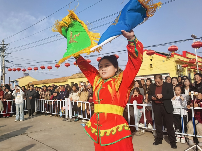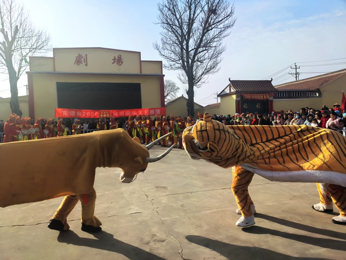 演出中,辛庄、小湖、东梁村的威风锣鼓气势磅礴,鼓点铿锵有力,敲出了乡村发展的精气神;北蒋、东梁村的经典民俗《王龙送闺女》活灵活现,南蒋村《农民大生产》秧歌、《猪八戒背媳妇》趣味十足,让现场欢声笑语不断;温家山花伞大头娃娃旱船、岑峰村战鼓与牛斗虎表演民俗特色浓郁,一招一式尽显乡土文化魅力;西梁村《福到咱家》《正月十五闹花灯》、河底村舞蹈、寺家坪村《女驸马》轮番上演,节目形式多样、内容喜庆,将现场氛围一次次推向高潮。