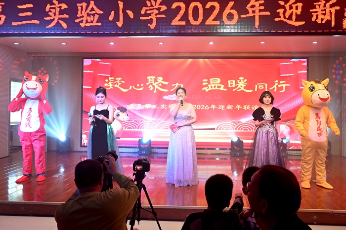 山西科技报阳泉讯(侯昊)岁律更新,华章日启。2025年12月27日,盂县第三实验小学“凝心聚力 温暖同行”迎新年联谊会现场,暖意融融、欢声盈耳,全体教职工欢聚一堂,以歌舞寄情、以游戏聚力、以初心赴约,在回首耕耘中凝聚奋进力量,在满怀期许中迎接2026年新征程。