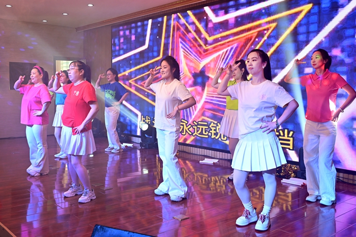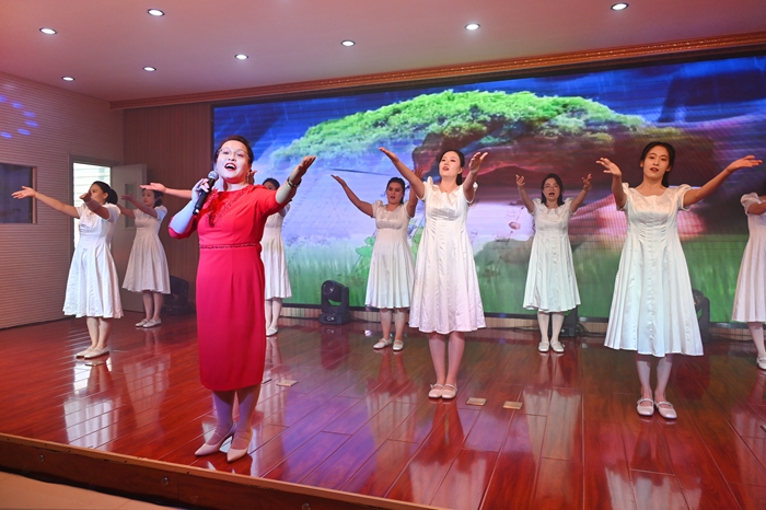 随后,歌伴舞《老师不老》以翩跹舞姿与赤诚歌声,礼赞教育工作者扎根讲台的无悔与永葆热忱的育人初;三年级教师带来的舞蹈《教师阵线联盟》,将新时代教育者的奋进姿态与灵动风采展现得淋漓尽致;学校领导班子成员演绎的《薪火传初心・聚力谱新篇》,以豪迈的旋律和深情的告白,诠释了领航团队深耕教育、护航成长的责任与担当……整场演出精彩纷呈、高潮迭起,最后,全体教职工合唱《相亲相爱一家人》,真挚歌声回荡全场,将“温暖同行”的信念深深镌刻在每个人心中,也为展演画上圆满句号。
