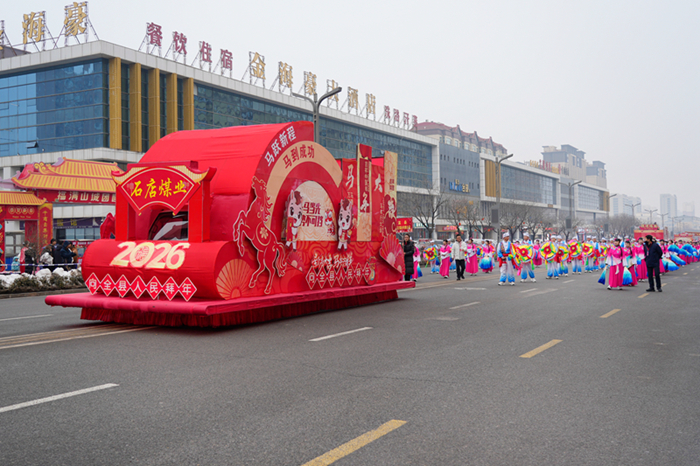 山西科技报阳泉讯(李淑婧) 锣鼓铿锵辞旧岁,秧歌翩跹贺新程。3月2日至4日,2026年盂县民间艺术展演火热上演,石店煤业携秧歌《马跃新春扭起来》盛装登场,以灵动舞姿、昂扬气象,为新春佳节增添一抹民俗风情。