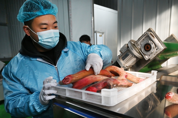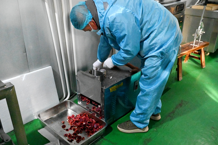 山西科技报阳泉讯(李淑婧 李荣)12月25日,山西益林农业开发股份有限公司(以下简称“山西益林农业公司”)鹿茸加工车间内,机器轰鸣、人影攒动,一派热火朝天的备货景象。工人们身着统一工装,在各自岗位上有条不紊地忙碌,经过排血、清洗、切片、烘干、磨粉等多道精细工序,一件件高品质鹿茸系列产品新鲜出炉。