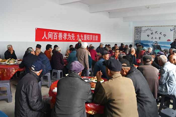 山西科技报阳泉讯(李淑婧)“今天的活动可太贴心了!”10月29日,盂县西潘乡桥耳村大礼堂内暖意涌动,阵阵欢声笑语交织成温馨的乐章。九十余位老人围坐在一起,脸上洋溢着幸福的笑容,在热闹祥和的氛围中欢庆重阳佳节。“上午,乡里领导专门从城里喊来理发师,为我们理发;中午不仅请我们吃饭,还组织人给我们表演,你说我们这生活好不好。”桥耳村村民李福亮笑着说道。