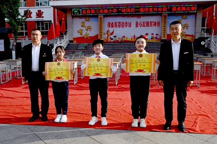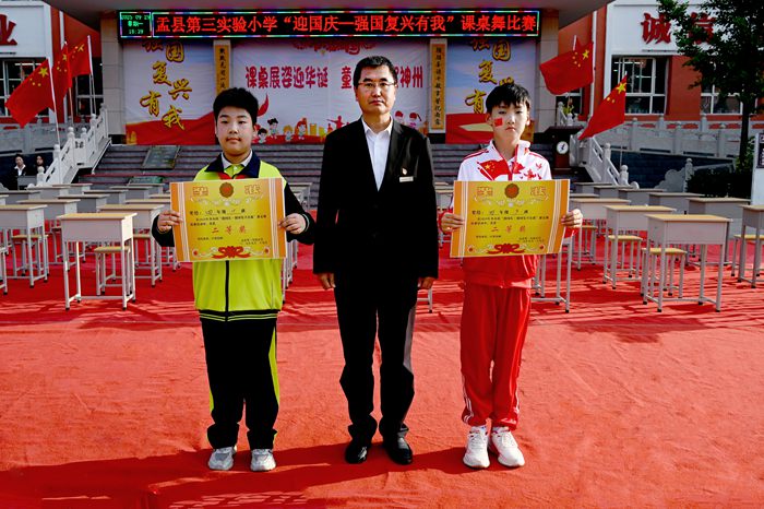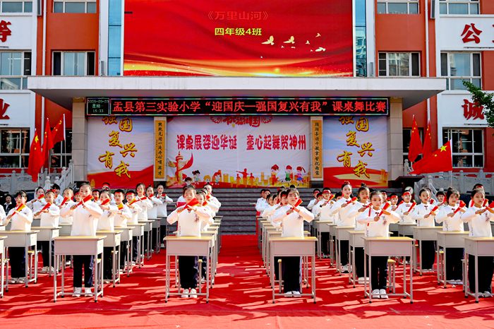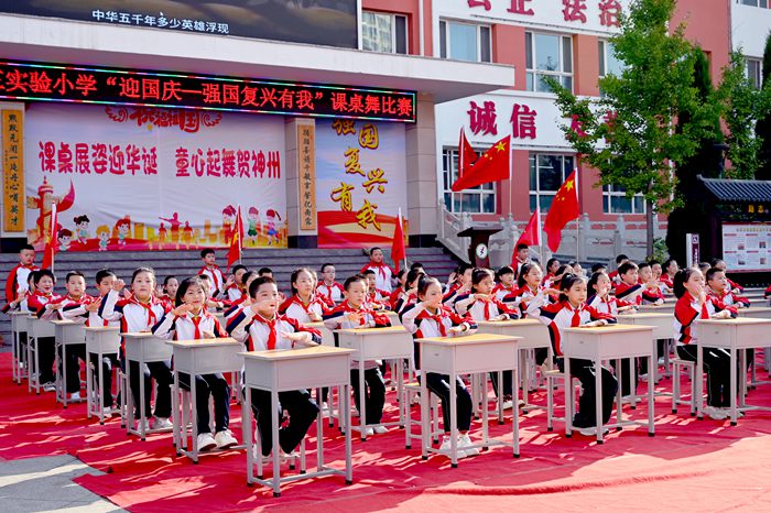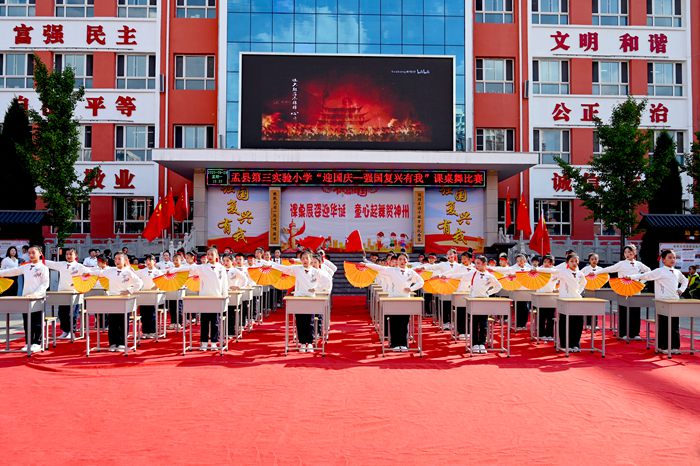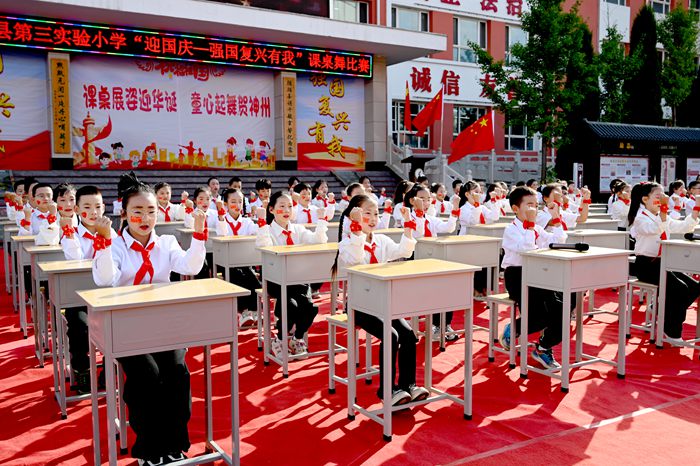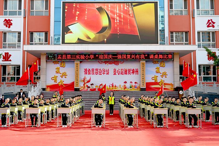 山西科技报阳泉讯(李淑婧)课桌展姿迎华诞,童心起舞贺神州。9月29日,盂县第三实验小学“迎国庆·强国复兴有我”课桌舞比赛圆满举办。盂县第三实验小学党支部书记、校长郭瑞祺及校领导班子成员现场观看。